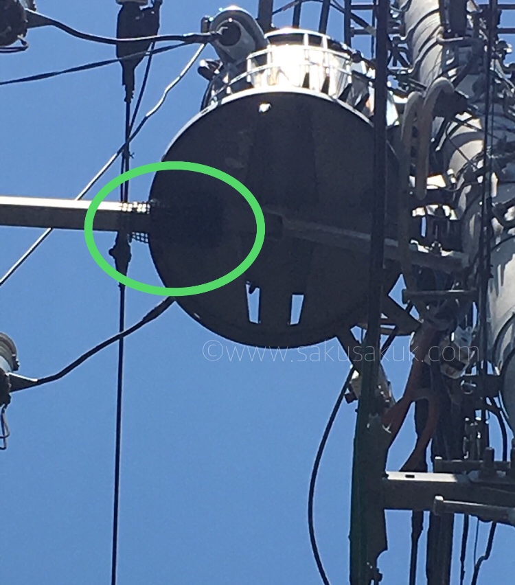 ここ最近、上記の画像にあるタンク付主電柱から一日中鳥の鳴き声が聴こえていました。
