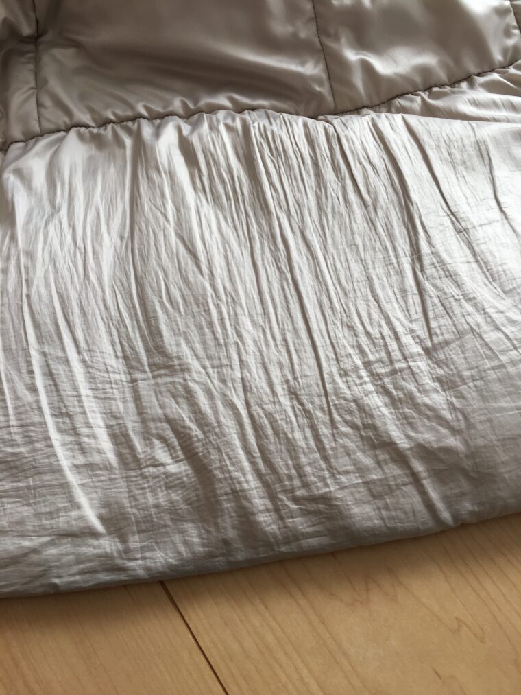 ぺらっぺらな上、前回羽毛布団を洗った時は、羽毛が固まっていましたが、今回は羽毛がどこにあるのか触ってもわからない!