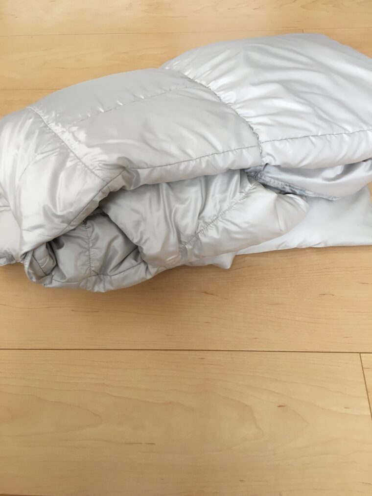 冷静に考えてみれば当たり前ですが、羽毛布団とダウンコートに入っている羽毛の量は全く違うんですよね。