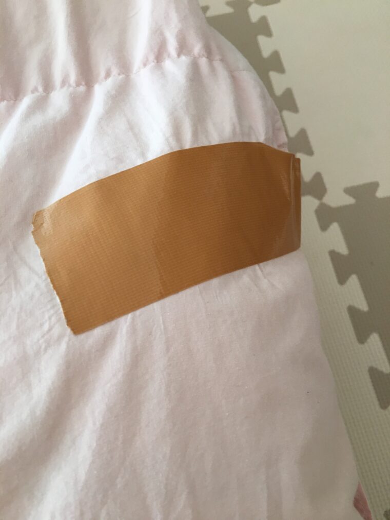 ガムテープが貼ってある布団を干すには強い心が必要です。